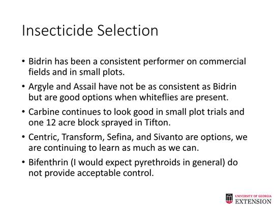 There will be a handful of meetings this month in Appling County, see the list below for meeting information. I blasted my first peanut pod sample for 2025 last Friday, they were 120 days old DG 913 peanuts and looked to be about 17-21 days out from digging, this could be longer due to the cooler temperatures. Give me a call to schedule a time to do peanut maturity checks, May 5th planted peanuts are 120 DAP today. Dr. Monfort believes our early planted peanuts could be right on time to slightly early, read more on his thoughts further in this newsletter in the Peanut Pointers. I started to see some leaf spot ramp up in fields with tighter rotations last week, I highly recommend a high dose of good leaf spot material in tighter rotation fields to finish out the season were needed. We are learning more about Cotton Jassid as we go. Dr. Roberts has given us agents another update, see those slides below, call if you have any questions and check your fields.
