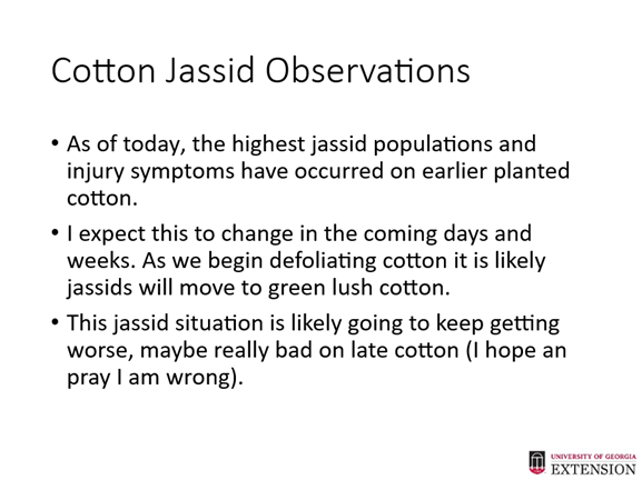 - Cotton Jassid Update September 1, 2025 (Dr. Phillip Roberts, UGA Cotton Entomologist)