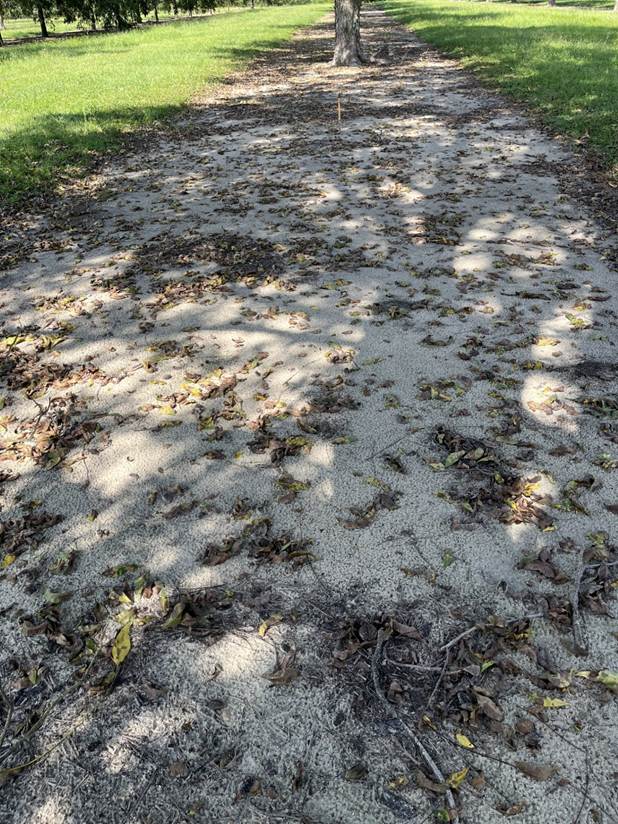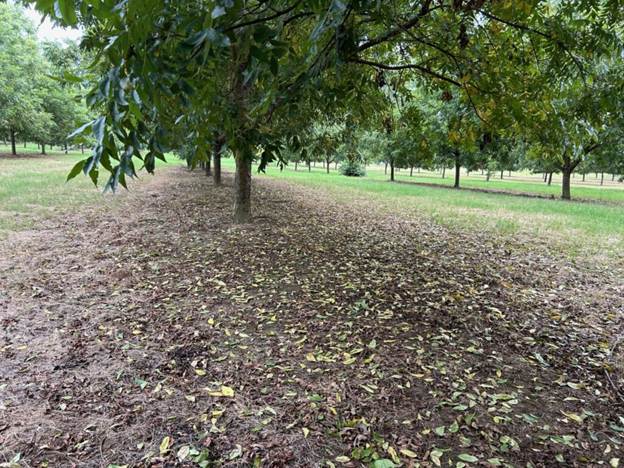 This past week I have some calls on leaf drop in orchards. The leaf drop I have been seeing does not look like anthracnose or mites are the culprit. Reviewing Lenny’s posts in the past few years he recently spoke on Leaf drop due to a hot/dry period followed by a rain or an increase in irraigation, and i bleieve that is what we are experiencing. It has been very dry in Appling County over the past 2 weeks and we have began running some irrigation to the trees in response to the lack of rain . Lenny says “leaf drop due to drought stress usually doesn’t occur until you get rain because water is required to break down that abscission layer at the point of attachment to the tree. We often see this occur in June/July but it can happen at any time and late in the season like this it is often heavier because those dry, hot conditions late in the season accelerate the process of leaf senescence. Usually lower leaves in the shade will be the first to come off because, again, these are often the most stressed leaves and are generally the firsst to senesce. This can be observed in trees where those internal, lower leaves are yellowing already.”