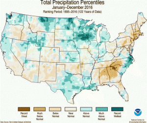 According to the state rankings, Georgia was the only state that set a new record for temperature for 2016, but every other state was much above normal for the year, and all of the Southeast states were in the top five warmest. According to the report, the breadth of the 2016 warmth is unparalleled in the nation’s climate history. No other year had as many states breaking or close to breaking their warmest annual average temperature. Georgia was also the 9th driest on record due in part to the exceptional drought which plagued significant parts of the state this summer and fall.