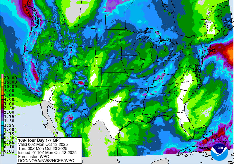 If you were hoping for rain this week, you will likely be disappointed. The latest 7-day QPF map shows that a big portion of the Southeast will get little to no rain at all this week. For the next few days, only the eastern Carolinas and Virginia will get rain from the coastal storm that is moving up the East Coast. The entire region with the except of far SE Florida will be dry in the middle of the week. By next weekend, a front will be approaching the area and it could bring rain to the region next weekend beginning with Alabama on Saturday and moving eastward through the region on Sunday and the following few days. The rainfall amounts are likely to be light except in northern Alabama and western Tennessee. With no rain and warmer temperatures returning to the region this week, we can expect a continuation of drought expansion on Thursday’s Drought Monitor.