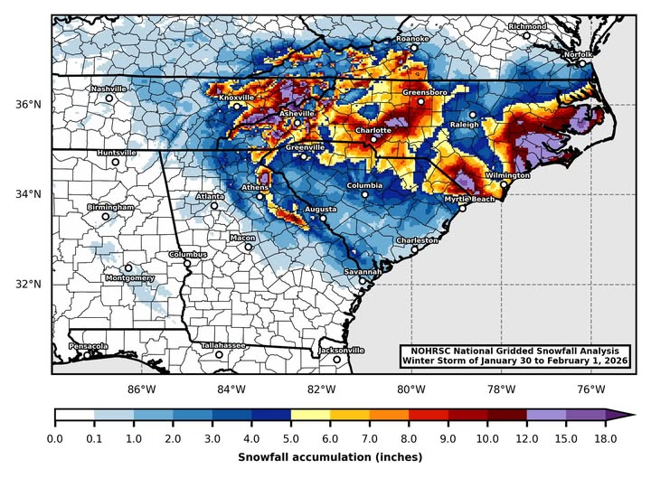 I have seen several snowfall maps of the snow that fell during the storm this past weekend put together by various television meteorologists and others. Here is one I like that was created using the NOHRSC National Gridded Snowfall Analysis by Jordan McLeod of the University of South Alabama that really captures the complexity of…