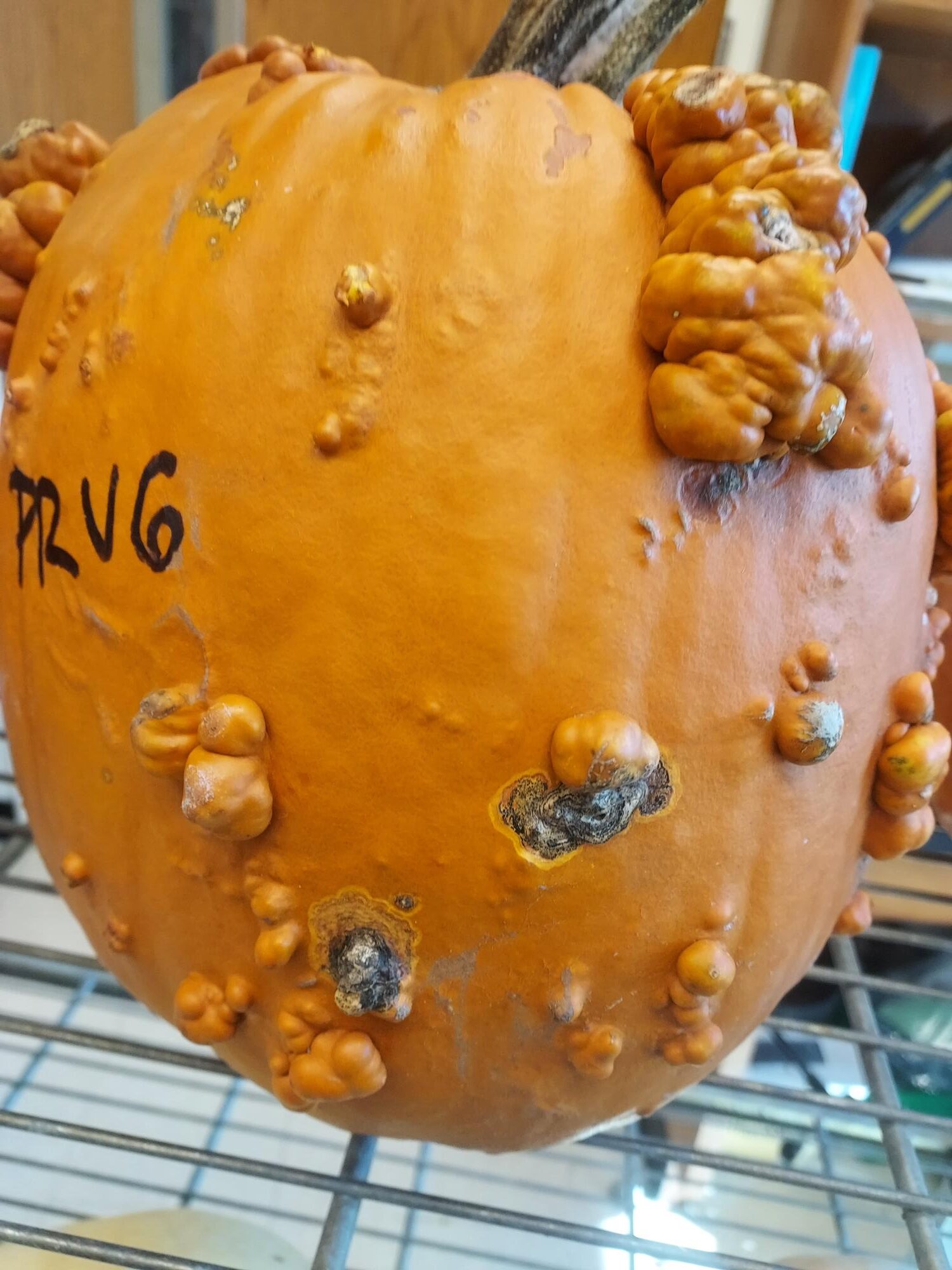 Fields survey 2025- Anthracnose fruit rot on warty jack-o-lantern pumpkin (Clemson)