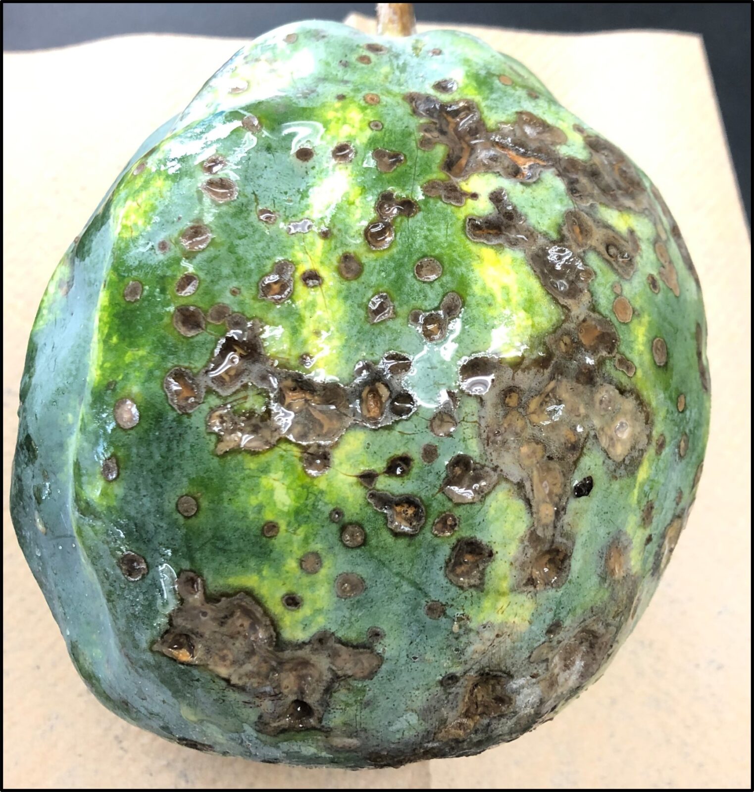 Mature fruits harvested from GA showing common symptoms associated with anthracnose caused by C. orbiculare (Dr. Walcott lab, GA, 2025)