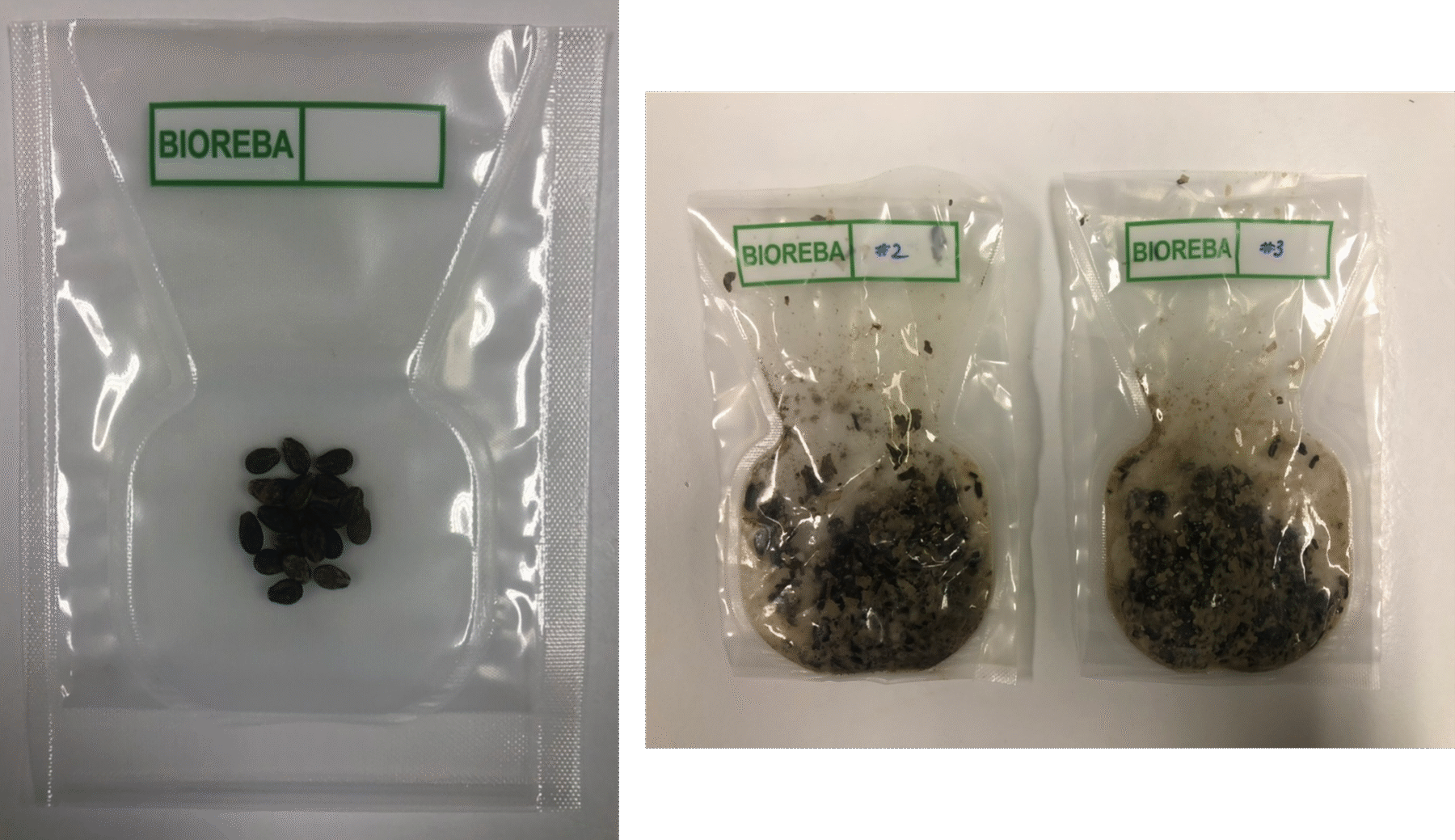 Watermelon seeds pre- (left) and post-mechanical crushing (right) (Dr. Walcott lab, GA, 2025)