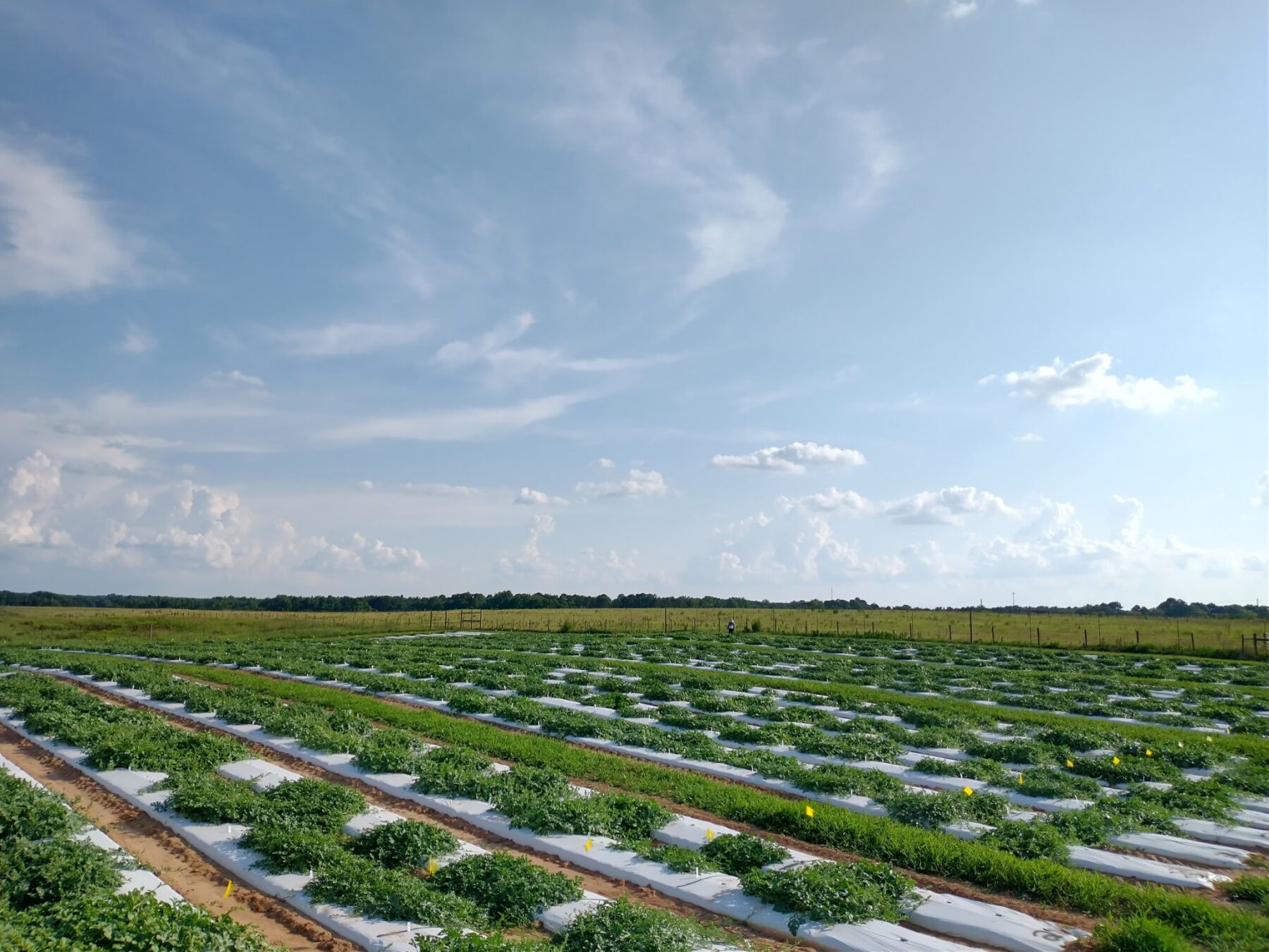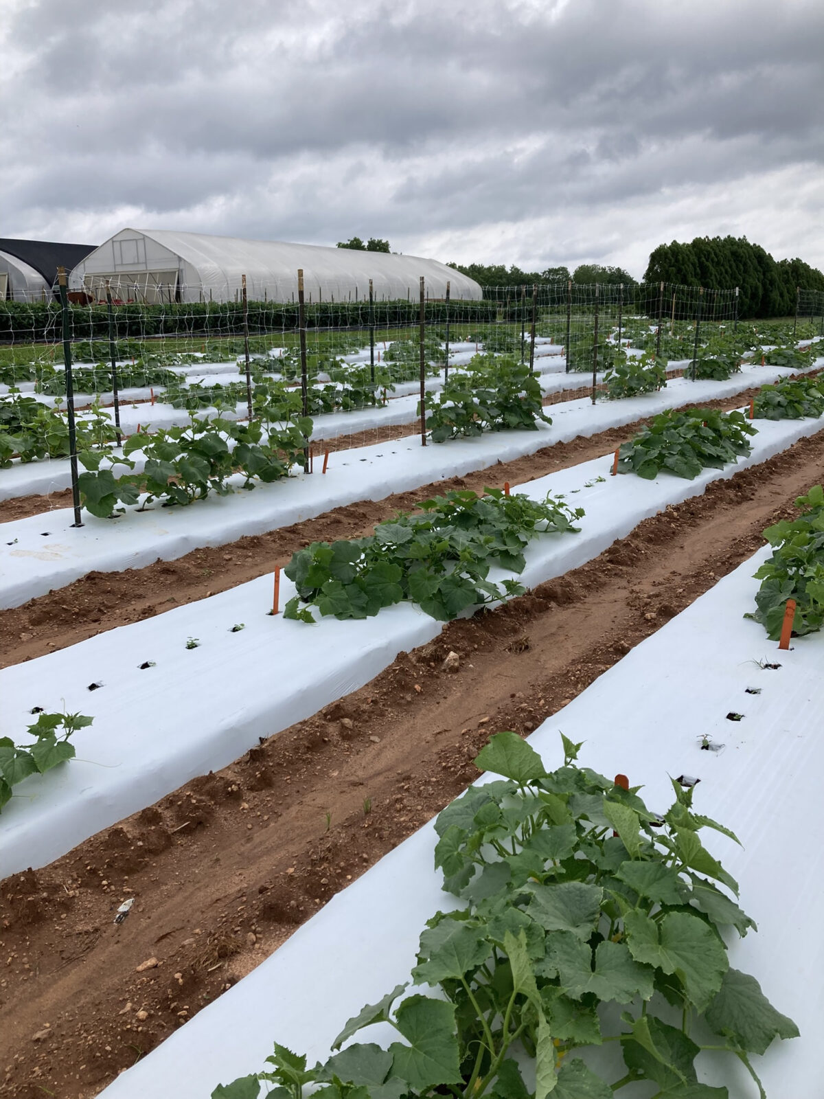 Cucumber Variety Trial: Plot layout of cucumber variety trial, early in the season (Dr. Coolong Lab, UGA 2025)