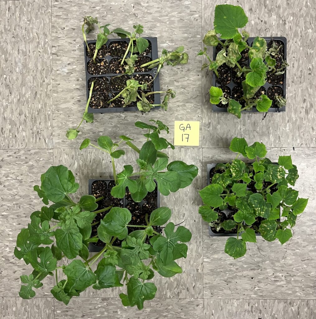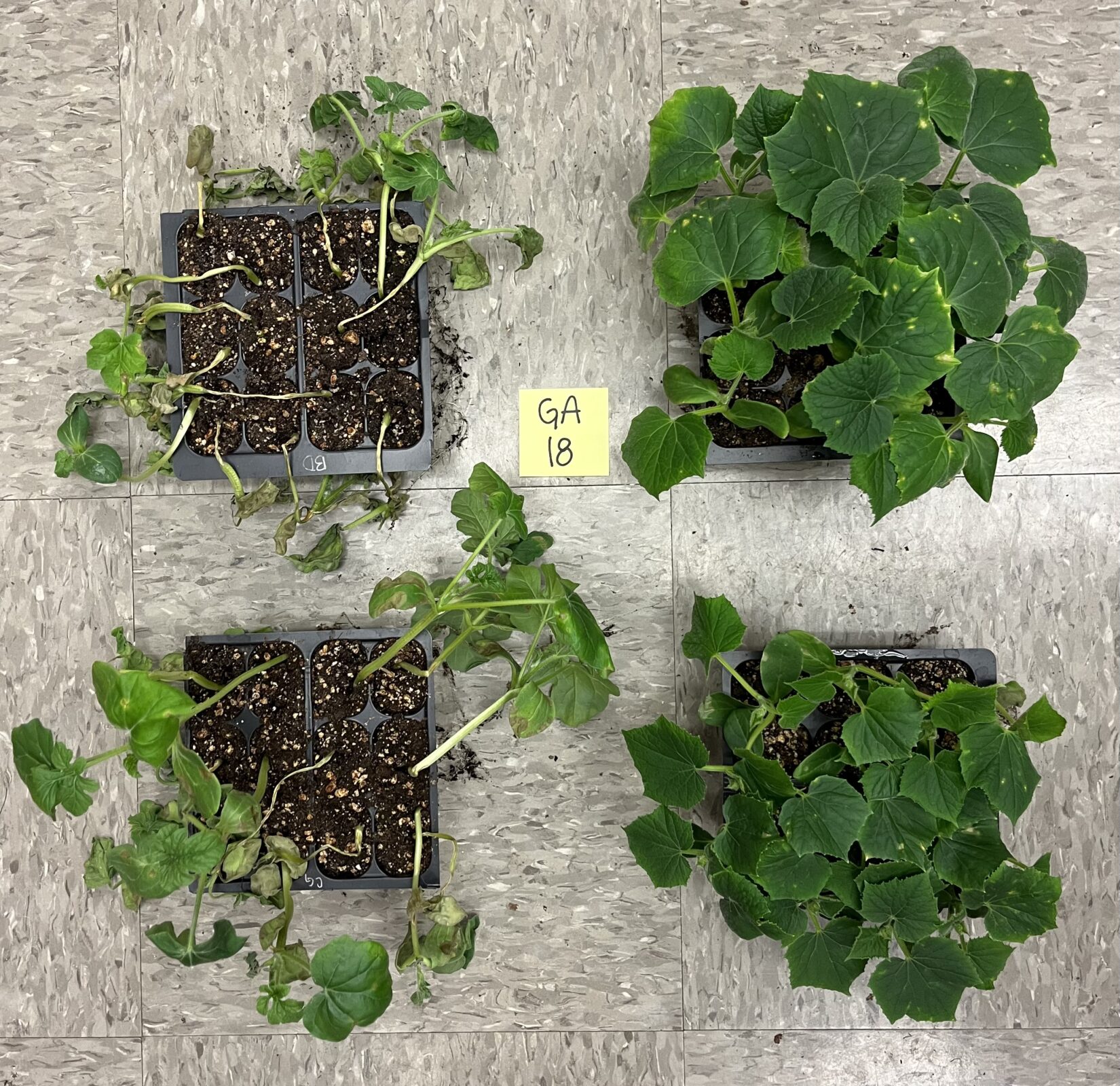 Race Typing: Race 2, showing collapse on both watermelon cultivars and lesions on cucumber ‘Marketer’. (UFL;2025)