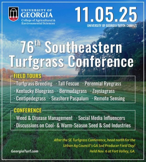 Registration Link: https://turf.caes.uga.edu/southeastern-turfgrass-conference/76th-southeastern-turfgrass-conference.html